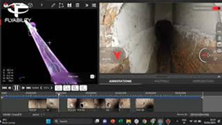 また、ELIOS3は、レーザーを使ったLiDAR SLAMの技術を使い、リアルタイムに3Dマッピング技術を活用して下水道管内の変化を可視化が可能です。例えば、トンネル上部には、硫化水素が付着し、ひびが入りやすくなり、コンクリートが劣化し、表面が剥離し陥没している様子等、映像のみでは発見しづらい状態を3Dモデリングで可視化する等、従来の目視検査や映像撮影では難しかった構造の詳細の把握や変化等の記録が可能になります。これにより、点検精度が飛躍的に向上し、下水道の長期的な維持管理にも大きく貢献します※4。