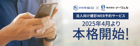 株式会社イーウェル(本社:東京都千代田区、代表取締役社長:稲葉章司、以下「イーウェル」)とマーソ株式会社(本社:東京都港区、代表取締役社長:西野恒五郎、以下「マーソ」)は、2025年4月より、法人向け健診WEB予約サービスを本格的に開始いたします。これは、利用者・健康保険組合・健診機関の三者をオンラインで直接つなぐ、業界においても先進的な取り組みとなります。