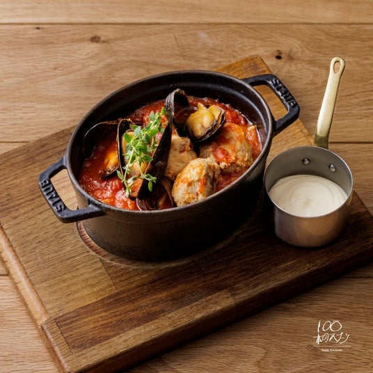魚介をじっくりと煮出した濃厚なスープに、真鯛のクネルの旨味、トマトと白ワインの酸味を重ねて味わい深い一皿に。アイオリソースを溶かしながら味の変化をお楽しみください。