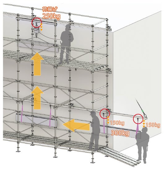 ハンソーレール 資材搬送・揚重イメージ(足場は別売)