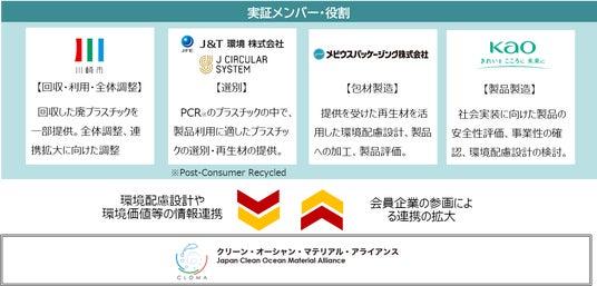 2024年10月より開始される循環実証は、「かわさきプラスチック循環プロジェクト」(以下「かわプラ」)※2に参加する各企業や川崎市を主体に、海洋プラスチック問題に取り組む国内最大級の団体「Japan Clean Ocean Material Alliance(CLOMA)」と連携して進められます。メビウスパッケージングは、循環実証の中で、かわプラ所属メンバーより提供を受けた再生材を活用した環境配慮設計、製品への加工および製品評価の役割を担う予定です。