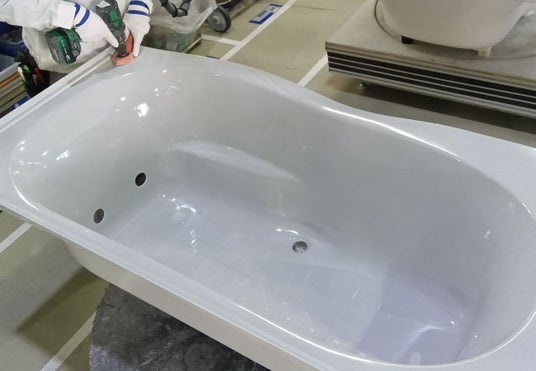 FRPは防水性や耐久性に優れていることから、浴槽などの素材として広く普及しています。一方、熱硬化性樹脂にガラス繊維等を組み合わせた複合素材のため、素材を分離してリサイクルすることが難しく、現状は不要となったFRPの多くは埋め立てや焼却処分されています。