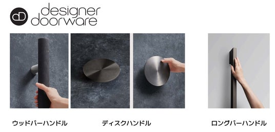 国際的デザイン賞を受賞するドア・パーツブランドDesigner Doorwareから、日本古来の焼杉技法を用いた天然木製の「ウッドバーハンドル」と、真鍮素材に金属皮膜を蒸着させることで 耐腐食性・耐摩耗性を向上させた「ディスクハンドル」を採用、追加します。