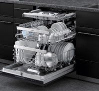 食器も調理器具も1日分まとめ洗いできるゆとり大容量で、約12人分(※)の食器が収納可能です。多種多様な食器や調理器具、小物類まで、まとめて入る3段かごを採用し、大きな鍋も余裕で伏せ置きできます。洗浄後は、ヒーターで熱した温風をファンで庫内に送り込む「ヒーター乾燥」でカラッと乾燥します。キレイに洗い上がった食器は、ナノイーX送風で清潔に保管します。
