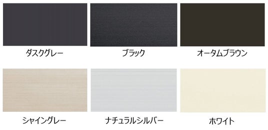 外観アルミ6色、内観木目2色、内観樹脂2色(ブラック、ホワイト)の展開