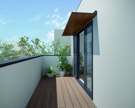 合わせて、ユニットひさし「スリムアート」から、大開口窓にも対応可能なフラットタイプ(※2)とアームタイプを新たに発売します。近年、自然エネルギーを上手に活用できるひさしは、夏の日射遮蔽をしながら、冬でも日射熱取得ができる商品として、住宅の省エネ化において再注目されています。