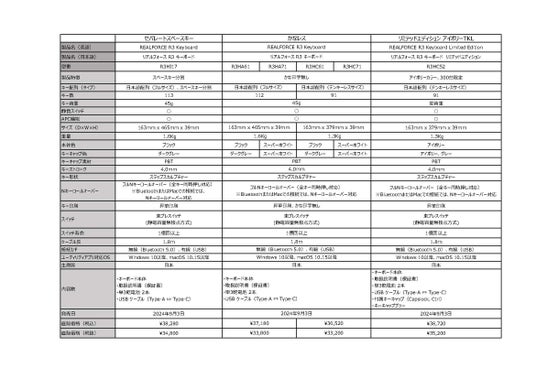 東プレ株式会社(代表取締役社長:山本 豊/本社所在地:東京都中央区日本橋)は、同社プレミアムグレードのキーボード製品「REALFORCE R3キーボード」のラインナップに、新たに3モデル6機種の新製品を追加しました。各製品それぞれ、本日9月3日(火)より、アマゾンジャパン、楽天で販売されます。