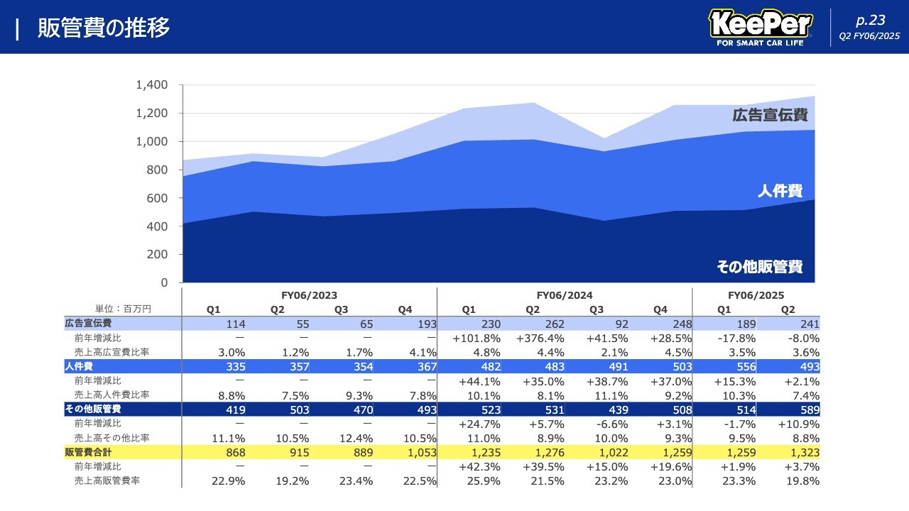 質問者:販管費の推移のうち、広告宣伝費と人件費について質問です。広告宣伝費は、先ほど「あまり伸ばさなくてもいい」とご説明がありましたが、来期も約3パーセントから4パーセントを維持することが可能なのでしょうか?