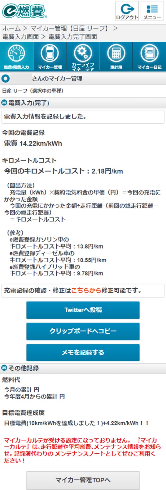 マイカー燃費管理サービス『e燃費』、新たに電費管理機能をリリース ~EVとハイブリッド車の1km走行あたりのコストも比較可能に