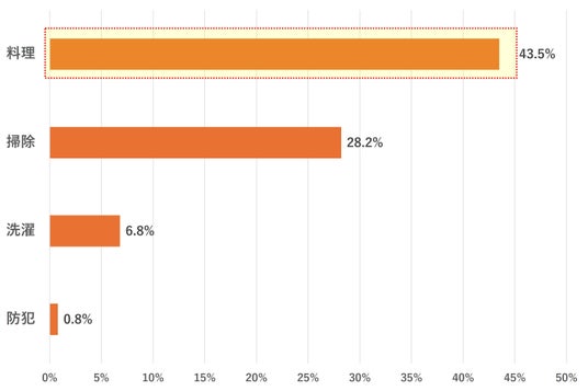 22歳~37歳の「銀のさら」WEB会員の中で、「一人暮らしの経験をしたことがある」と答えた1,379名に「一人暮らしの経験で最も不安かつ大変なことはなんでしたか?」と聞いたところ、「料理」と答えた人は43.5%、「掃除」と答えた人は28.2%、「洗濯」と答えた人は6.8%でした。