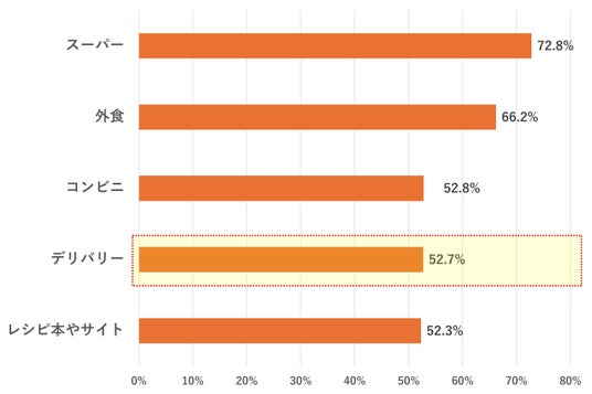 一方で、一人暮らしの経験で最も不安かつ大変なことに「料理」と答えた600名に(負担軽減のために)利用したものを聞いたところ、「スーパー」(72.8%)、次いで、「外食」(66.2%)、「コンビニ」(52.8%)、「デリバリー」(52.7%)という順で、いずれも過半数を占めました。