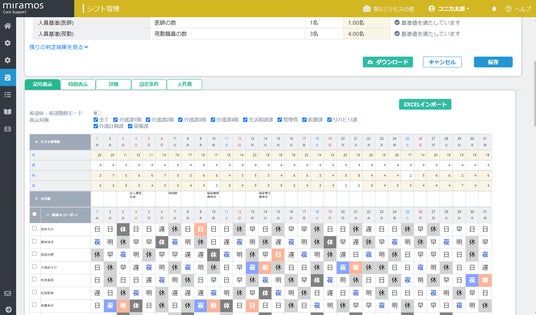 当社は、介護業界に対して人材派遣・人材紹介・外国人雇用支援など様々な人材サービスを手掛けていますが、人材提供だけでは解消できない人事労務管理課題に対するソリューションとして、この度コニカミノルタQOLソリューションズ社が提供するAI搭載シフト自動作成サービス『miramos』の導入提案を開始しました。