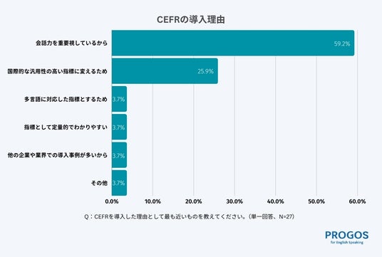 EdTechカンパニーの株式会社レアジョブ(以下、レアジョブ)の法人向け事業子会社である株式会社プロゴス(以下、プロゴス社)は、グローバル人材育成に取り組む企業を対象とした、CEFR(セファール)*1 の導入状況に関する調査結果を発表いたします。