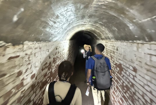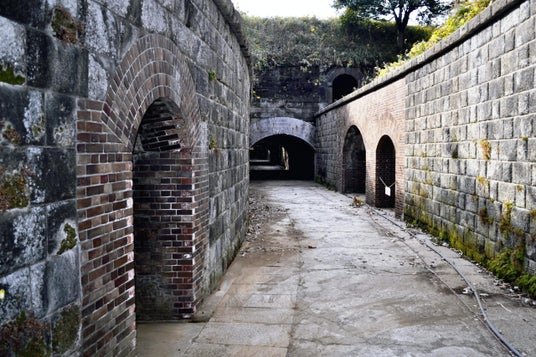 横須賀市の「千代ケ崎砲台跡」。トンネルや構造内通路、筒状の砲台運搬口などが配置された複雑な構造を持つ。