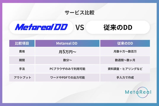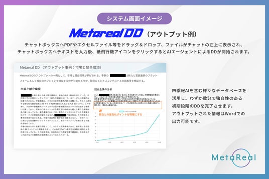 【CVC・M&A専用AI新開発】 AIがスタートアップ出資・M&A・融資の常識を覆す! 「Metarealデューデリジェンス(Metareal DD)」 3月17日提供開始