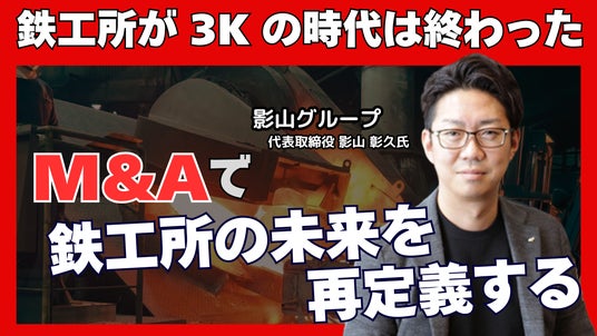 製造業で長年定着してきた『3K(きつい・汚い・危険)』の概念を一新する鉄工所が、静岡県沼津市に存在します。若手社員が活躍する洗練された職場環境の実現と、積極的なM&A戦略により、「新しい製造業」のあり方を追求する影山グループです。これまでに5社のM&Aを成功に導き、持続的な成長を遂げてきた同社。本コンテンツでは、同社代表取締役の影山彰久氏の1日に密着し、M&A戦略の裏側や製造業の未来を切り拓く革新的な取り組みに迫ります。