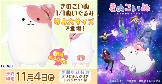 フリュー株式会社(本社:東京都渋谷区、代表取締役社長:三嶋隆、以下フリュー)はTVアニメ「きのこいぬ」より「きのこいぬ1/1ぬいぐるみ」を発売することを決定いたしました。本日9月8日(日)より、フリューが運営するホビーECサイト『FURYU HOBBY MALL(フリューホビーモール)』(URL:https://furyu-hm.com )にて予約を開始いたします。