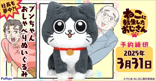 フリュー株式会社(本社:東京都渋谷区、代表取締役社長:三嶋隆、以下フリュー)はTVアニメ「ねこに転生したおじさん」より「プンちゃんおしゃべりぬいぐるみ」を発売することを決定いたしました。本日11月25日(月)より、フリューが運営するホビーECサイト『FURYU HOBBY MALL(フリューホビーモール)』(URL:https://furyu-hm.com)にて予約を開始いたします。
