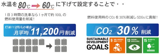 ・水温を80℃から60℃に下げることで燃料コストとCO2を削減しSDGsにも貢献