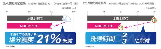 ・60℃のウルトラファインバブル温水を使用することで、通常の80℃の温水と同等の除塩効果を発揮