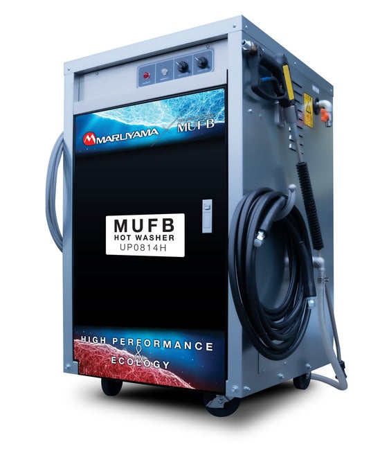 「UP0814H」は、丸山製作所のウルトラファインバブル発生装置(MUFB)を搭載した温水洗浄機です。ウルトラファインバブル水を最高80℃の温水・最高圧力8MPaの高圧で噴射することを可能にしました。