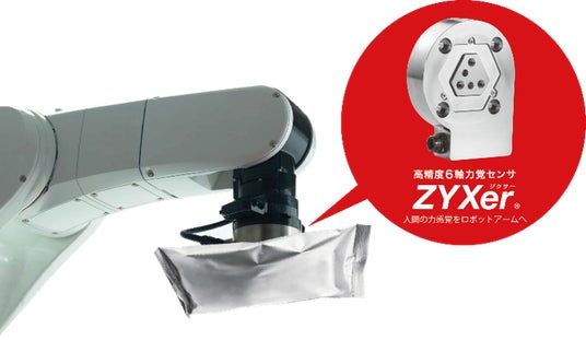 さらに、6軸力覚センサZYXer(R)シリーズは、0.5gの分解能(1円硬貨(1g)の半分の重さが測定出来る)をもつ高精度センサをはじめ多彩なラインナップを揃え、繊細な重量検知から重量物の測定まで多種多様なワークや用途への応用が可能。製品の箱詰めやパレタイジング時の欠品検知以外にも、選果や調味料の秤量などの用途での活用も見込んでいます。