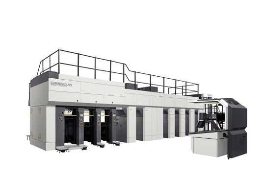 右:2018年に国際通貨協会(IACA)最優秀技術賞を受賞した、番号印刷機Currency NV32