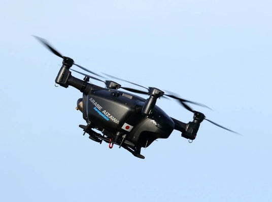現在、ドローン市場では、「バッテリー」を動力源とする電動ドローンが主流です。一方、当社が製造・販売する「AZ-250」はガソリンエンジンを搭載し、電動ドローンでは実現困難な数時間にも及ぶ飛行時間を実現。無積載であれば約7時間、50kgの積載物でも約1時間の連続飛行が可能です。豪雨にも耐えられる全天候型の機体です。