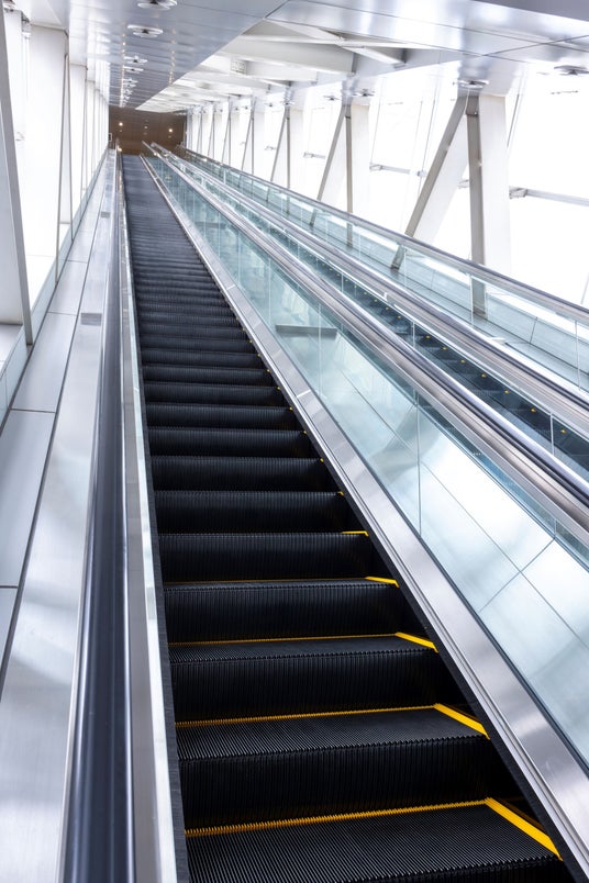 リニューアルが完了した8台のうち2台は、フジテックの日本で一番長いエスカレータです。高さは22m、長さは45mあります。これは一般的なビル※のエスカレータ5台分に相当し、1台のエスカレータで1階から6階まで移動できることになります。