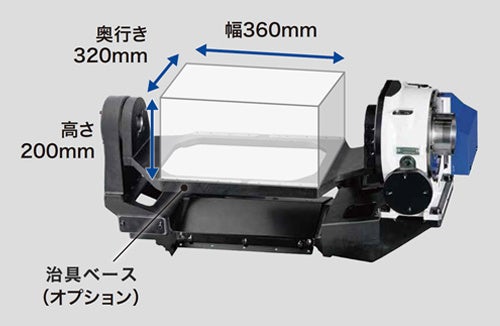 治具ベース(オプション)選択時の搭載範囲(参考値)