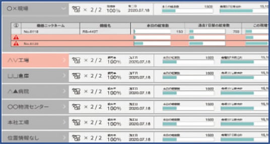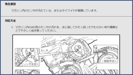 工具ごとにエラーの発生状況をモニタリングし、不具合が起きたときは対処方法を確認できます。また、稼働実績をもとに適切なタイミングでメンテナンスの推奨をお知らせします。