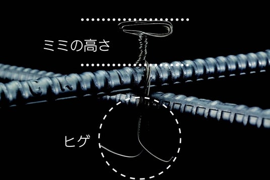 カットしたワイヤの先端を折り曲げる技術「先端折り曲げ機構」搭載により、ミミの高さは約12mm(注3)となります。下にヒゲも出ないので、コンクリートのカブリ厚が少ない現場やプレキャスト工場での使用も可能です。