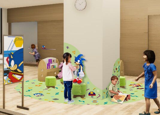 当該エリアは、「ソニック・ザ・ヘッジホッグ」や「ぷよぷよ」といったセガのキャラクターIPを活用し、エントランスはこどもたちが退屈せず安心して待てる空間にし、処置室は少しでも怖さを感じないよう工夫した空間づくりを目指しています。
