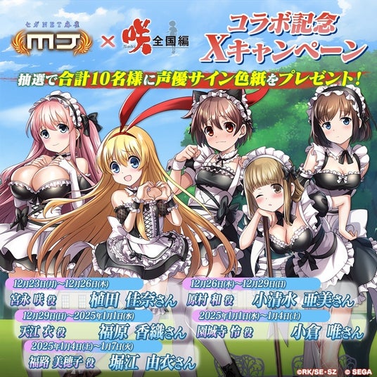 株式会社セガは、ネットワーク対戦麻雀ゲーム『MJ』シリーズとアニメ『咲-Saki-全国編』とのコラボイベント、“第17回咲-Saki-CUP”を、本日2024年12月23日(月)より開始しました。