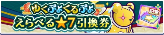 内容:対象の「ぷよフェスキャラクター」の中からお好きな★7キャラクターと交換できる「ゆくぷよくるぷよ えらべる★7引換券」が登場します。
