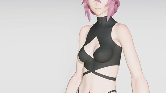 胸元や脇腹付近の隙間が目を引くデザインになっています。