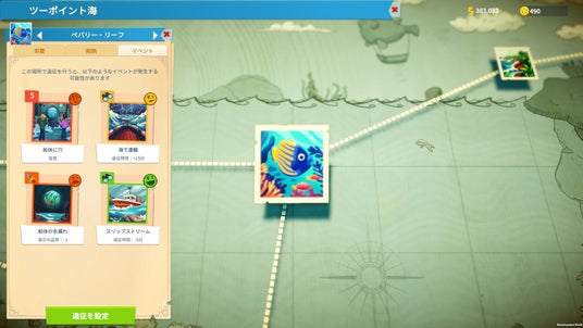 『ツーポイントミュージアム』では、『ツーポイント』シリーズの新要素として、経営と並行して展示品の探索を行うことができます。今回は、遠征先エリアの「ボーン・ベルト」、「ツーポイント海」、「あの世」にある調査地点と、そこで発生するイベントを紹介いたします。