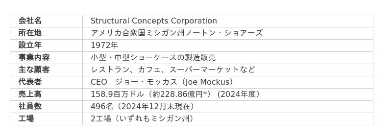 ■ストラクチュアル・コンセプツ:米国内で高品質な食品陳列用ショーケースを提供