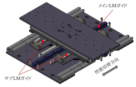THKの従来型免震台よりも低い加速度で起動し、特定の可動域を超えると免震性能が切り替わる二段階の特性を有し、揺れの大きさに応じた個別の免震性能を発揮させることが可能です。