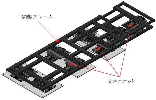 縦型炉の荷重を支える支承ユニットを複数配置し、各支承ユニットは鋼製フレームとプレートで連結する構造のため、搭載する縦型炉の形状や仕様に合わせて自由度の高い設計が可能です。