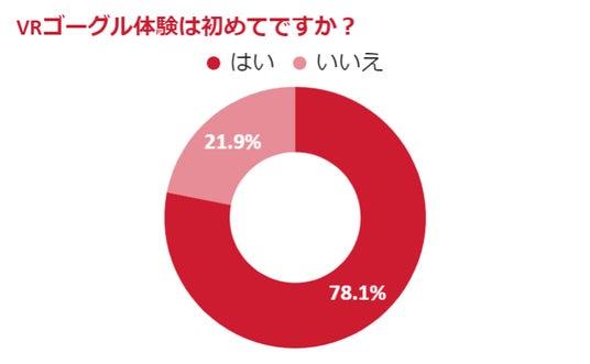 参加者の78%が初めてのVRゴーグル体験であり、また72%の人がVRに興味がありご来場された事が分かり、VR体験コンテンツがご来場のきっかけになり、集客に貢献していることが分かりました。