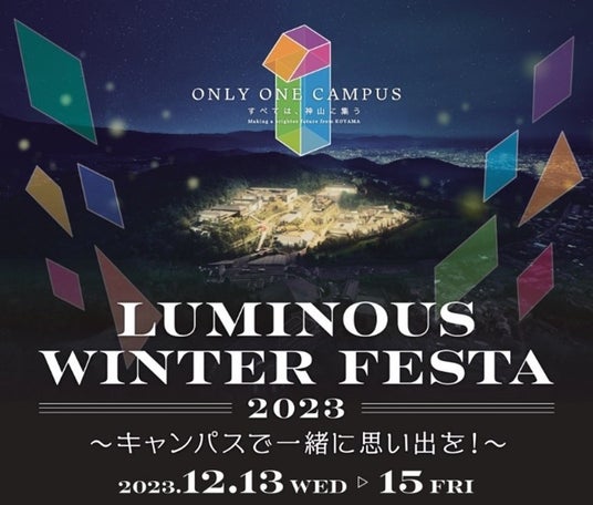 京都産業大学の初めての冬のクリスマスイベント「ONLY ONE CAMPUS Luminous Festa 2023~キャンパスで一緒に思い出を!~」の開催にあたり、キャンパス内のライトアップや、キッチンカー、LINEによるスタンプラリー企画に合わせて、キャンパス内の各所で楽しめる、クリスマスイベント限定のWebARフォトフレームを開発。どのようなフレームを制作するか学生を5グループに分けて、企画・共同開発いたしました。学生ならではの柔軟な発想や生成AIを活用した最先端技術のARフレームなど、5つの個性的なクリスマス限定フレームに仕上げました。WebARによりアプリインストールも不要で、手軽に撮影できるため、250人以上の学生がキャンパス内での撮影を楽しんでいました。