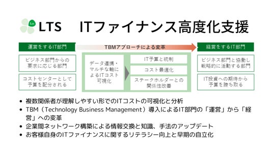 株式会社エル・ティー・エス(本社:東京都港区、代表取締役社長:樺島 弘明、以下LTS)は、5月からITファイナンス高度化のための支援サービスを本格的に提供します。