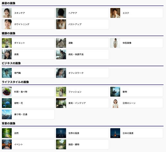 各カテゴリー内に用意されている参考画像の中から、求めている画像に近い画像を選択します。(参考画像をダウンロードして、そのままご利用いただくこともできます)