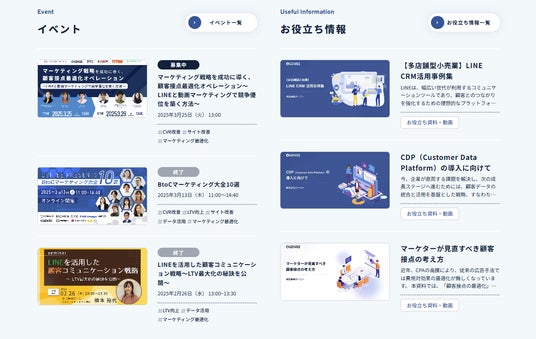 「LINEを活用した顧客コミュニケーション戦略」や「パーソナライズマーケティングの徹底解説」など、CXに関連するセミナー情報や、お役立ち情報をまとめた資料をご覧いただけます。最新のマーケティングトレンドや成功事例など、CXに関わる方にとって有益な情報をお届けします。