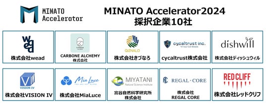 2回目となる今年は、多くの応募をいただきました。書類審査及び動画審査を実施し、厳正なる審査の結果、10社が『MINATO Accelerator 2024』に採択されました。今後、採択企業は2ヵ月間のメンタリングやレクチャー等を経て、2024年10月31日(木)に行われる成果報告会に参加いただきます。