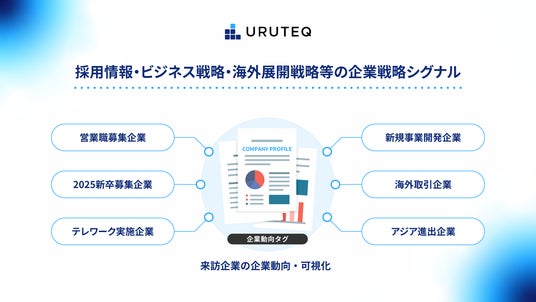 ログリー株式会社(本社:東京都渋谷区、代表取締役:吉永浩和、証券コード:6579、以下、ログリー)は、アカウントインテリジェンスツール「ウルテク」※1の「企業動向タグ」をアップデートし、新たに「企業戦略シグナル」として採用情報(営業職募集企業、2025新卒募集企業)、ビジネス戦略(テレワーク実施企業、新規事業開発企業、CSR活動に力を入れている企業)、海外展開戦略(海外進出企業、海外取引、アジア進出)の可視化機能を拡充いたしました。これにより、従来の展示会・セミナー情報の確認だけでなく、より戦略性の高い企業活動を包括的に把握し、営業およびマーケティング戦略のさらなる最適化に貢献します。