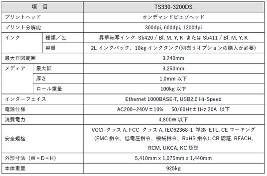 産業用インクジェットプリンタ、カッティングプロッタ、3Dプリンタを手掛ける株式会社ミマキエンジニアリング(本社/長野県東御市、代表取締役社長/池田 和明)は、大判ソフトサイン用途およびホーム・テキスタイル市場に向けて、ダイレクト昇華プリントと昇華転写プリント*の両方を一台で出力できる3.2m幅Roll to Rollインクジェットプリンタ「TS330-3200DS」の発売を発表し、9月11日から開催される展示会「サイン&ディスプレイショウ(東京ビッグサイト)」に同機を日本初出展いたします。