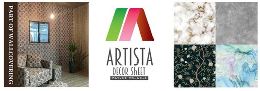 このたび当シリーズのラインナップに追加する壁紙シート「アルティスタ・デコールシート」は、インテリア業界では化粧シートと呼称される、耐水性や耐久性に優れた塩ビフィルムをベースとした高級用途向けの装飾用基材です。その貼付け面には予め粘着剤が塗布されており、これまで屋内の装飾に携わったことが無い事業者でも看板施工に多く使用される粘着層付き基材と類似の手順で施工頂けます。サイングラフィックス事業者が既存の施工技術を有効に活用し、屋内のグラフィック製作を始められます。
