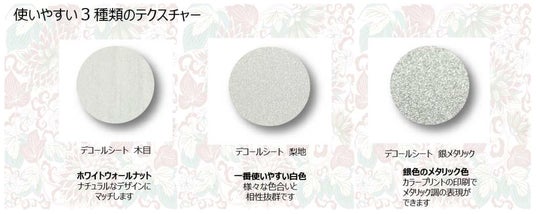 - 様々なシーンにマッチする3種類のテクスチャシート(梨地、木目、銀メタリック)をラインナップ